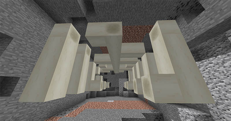 뼈 블록은 늪지대, 사막 바이옴에서 찾을 수 있는 화석에서 구할 수 있습니다. 뼈 블록은 나무 원목처럼 놓는 위치에 따라 모양이 다릅니다.