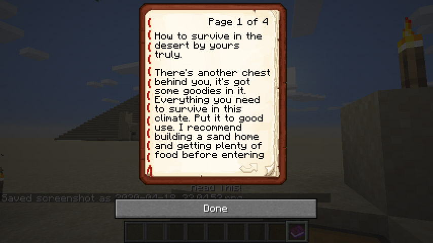 처음에 주어지는 자원으로 피라미드 밖에 집을 만들고 피라미드 내부를 탐험하는 맵입니다. 전용 리소스팩도 존재합니다.