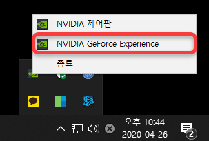 작업 표시줄 등을 이용해 지포스 익스피리언스를 킵니다