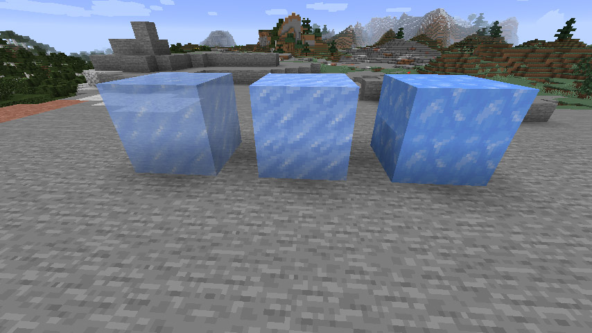 왼쪽부터 얼음, 꽁꽁 언 얼음, 푸른 얼음을 2x2 사이즈로 쌓아본 모습입니다.