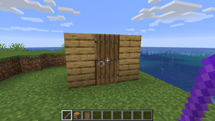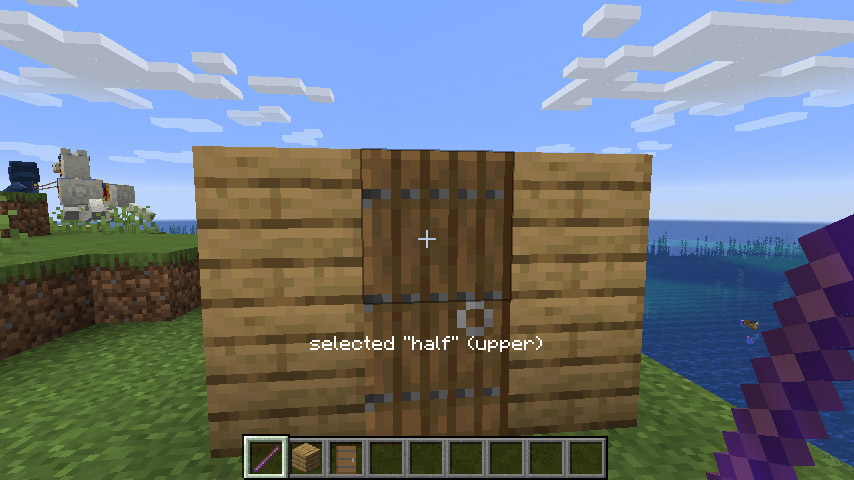 위 사진은 문 블록의 윗칸에 'half' 상태를 'lower'로 바꾼 상태입니다. 즉, 문 두 칸이 둘다 문의 밑 모양이 되도록 만들었습니다.