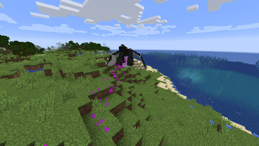 summon 커맨드로 엔더 드래곤을 소환했을 때도 마찬가지로 한대 때렸더니 후다닥 도망갑니다.