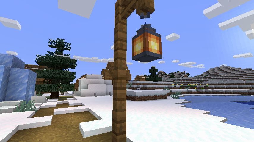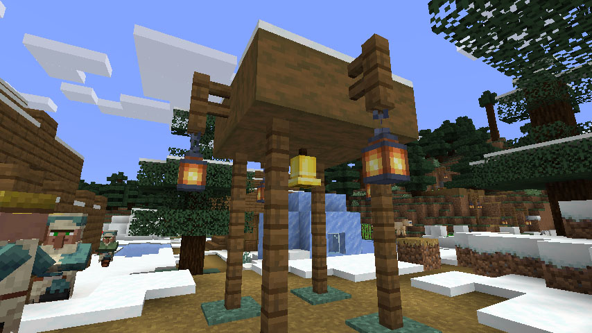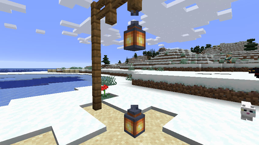 눈 덮인 툰드라(Snowy tundra) 마을 내에서 랜턴을 발견할 수 있습니다. 그리고 마을에서 사서가 에메랄드 1개로 팔 확률이 있습니다.