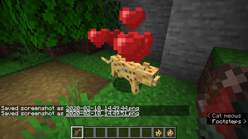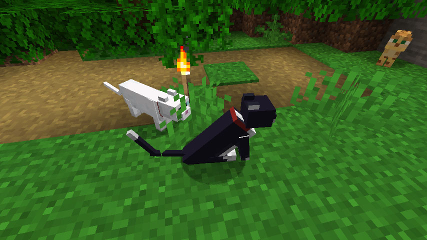 1.14버전 이후 오실롯과 고양이의 가장 큰 차이점은 고양이는 길들일 수 있는 반면, 오실롯은 길들일 수 없다는 겁니다. 대신 오실롯에게는 신뢰를 받을 수 있는데, 고양이처럼 목줄은 생기지 않지만 오실롯의 신뢰를 받은 이후에는 오실롯이 도망가지 않습니다.