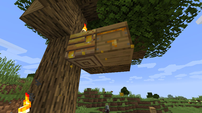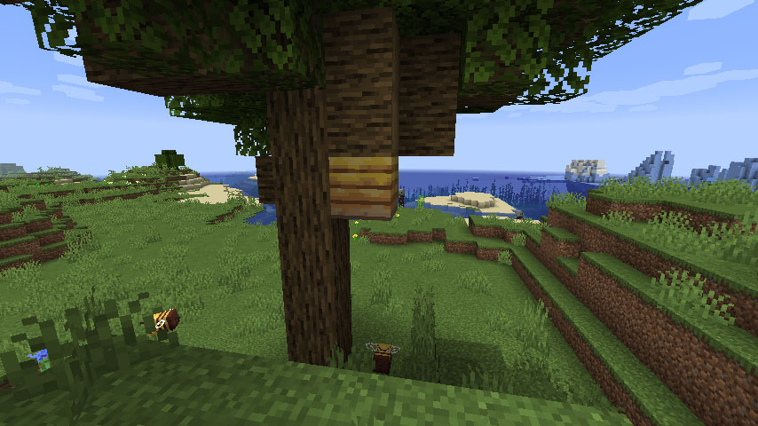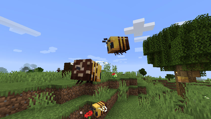 자연적으로 생성된 참나무(Oak Tree)와 자작나무(Birch Tree)에는 꿀벌이 3마리 들어 있는 벌집이 달려 있을 확률이 존재합니다.