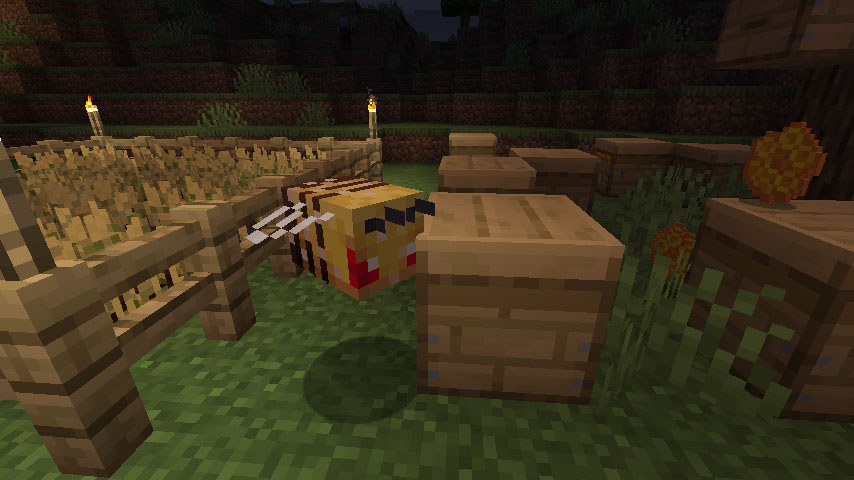 참나무, 자작나무로 자라는 묘목이 주변 2블럭 안에 아무 꽃이나 있으면 나무가 되었을 때 5% 확률로 꿀벌이 1-3마리 들어간 벌집이 생성됩니다.