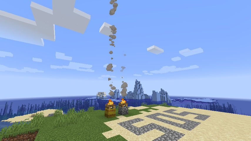 모닥불의 연기는 10칸 위까지 올라갑니다. 모닥불 밑에 건초 더미가 있다면 24칸 위까지 올라갑니다.