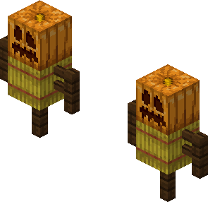 약탈자 전초기지에서 호박과 건초더미로 만든 과녁? 허수아비?를 발견할 수 있습니다.