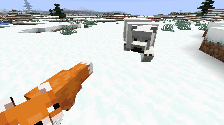 플레이어를 신뢰하는 여우는 위 동물들 대신 플레이어를 공격하는 몹을 공격합니다. 늑대와 북극곰에게는 공격하지 않고 도망갑니다.