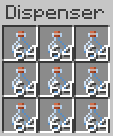 (7) 발사기에는 유리병을, 호퍼 2개 중 위에 있는 호퍼에는 위처럼 맨 왼쪽 칸에는 꿀이 든 병 하나를 놓고 오른쪽 칸에는 반블록을 4 4 5 5 개씩 넣어줍니다.
