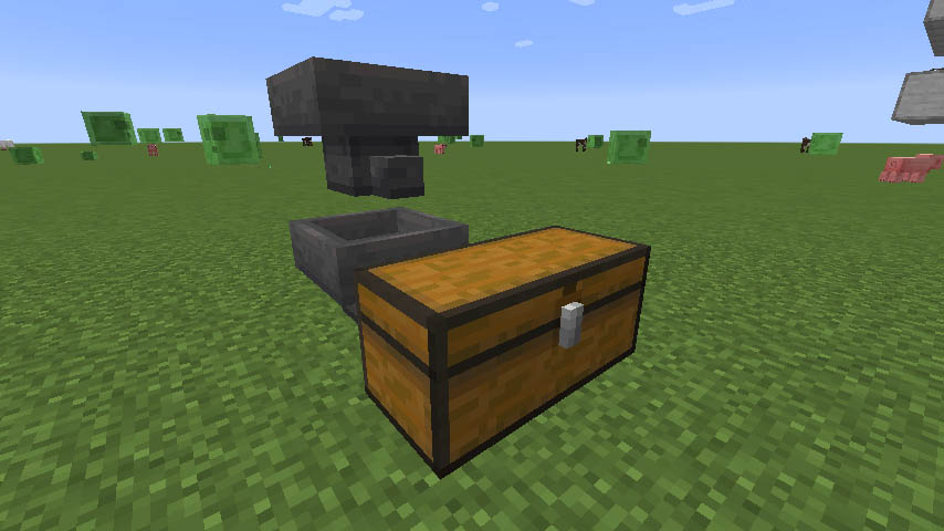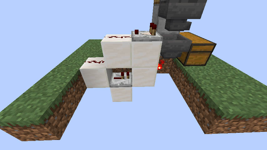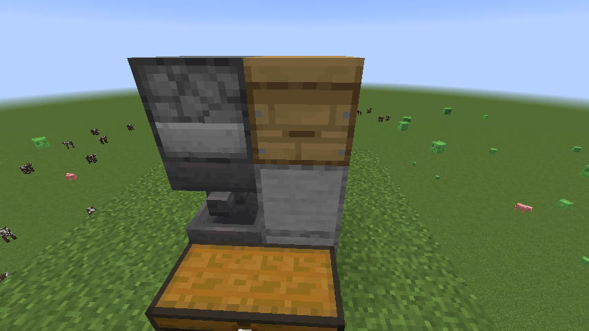 호퍼 밑에는 레드스톤 횃불이, 위에 있는 호퍼 바로 뒤에는 레드스톤 비교기가 있고 레드스톤 중계기가 블럭 속에 설치돼야 하는 점에 유의하세요. 방향도 정확히 맞아야 합니다.