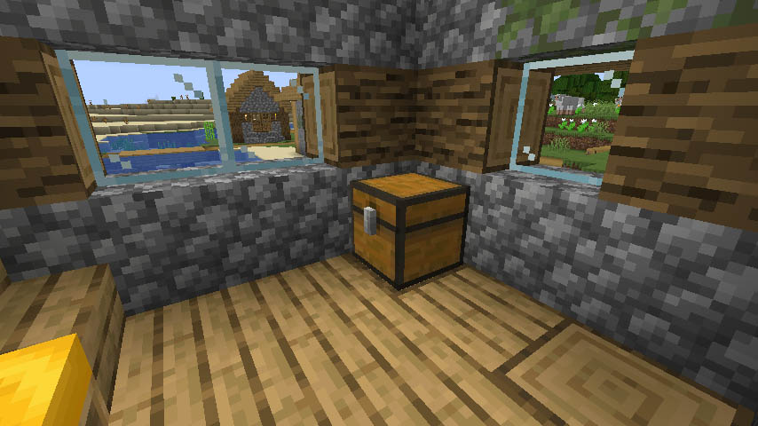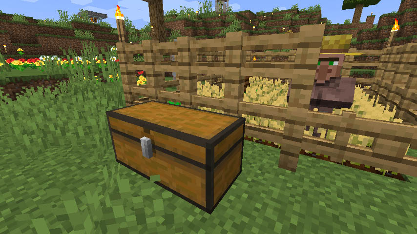 월드를 만들 때 보너스 상자 옵션을 키면 스폰 지점 주변에서 횃불과 함께 보너스 상자를 발견할 수 있습니다. 보너스 상자 안에는 초반에 유용하게 쓰일 수 있는 나무 도끼, 나무 곡괭이 등 여러 아이템이 들어있습니다.