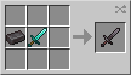 자바에디션 1.16버전 20w10a 이후 버전부터는 네더라이트 도구, 장비를 만들 때 조합법 대신 대장장이 작업대를 사용해야 합니다.