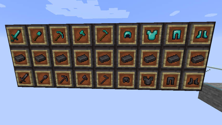 그동안 에메랄드와 네더 석영 등의 광물이 추가되긴 했지만 도구나 장비로 만들 수 없는 광물이라 아쉬움이 있었죠. 10년만에 추가된 도구로 만들 수 있는 광물이면서 또한 가상의 광물이기도 합니다.
