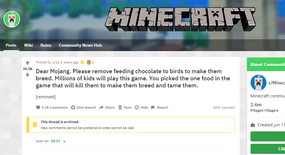 마인크래프트 사용자 연령대를 생각하면 수정하는 것이 옳았다고 생각합니다.